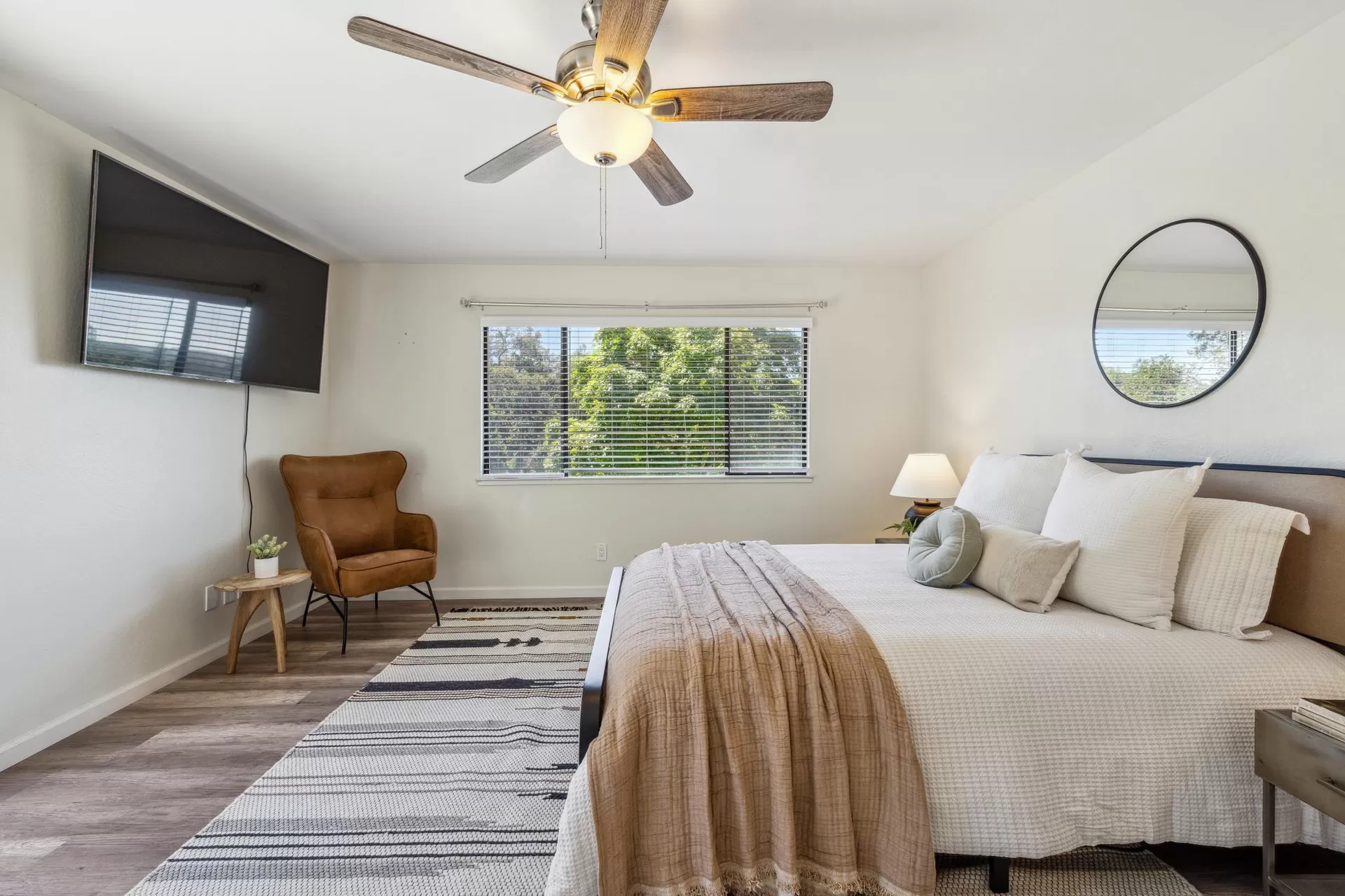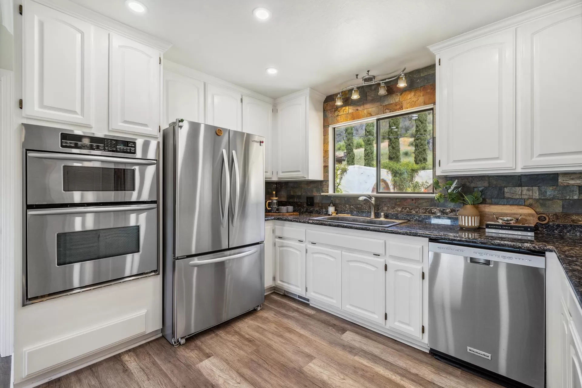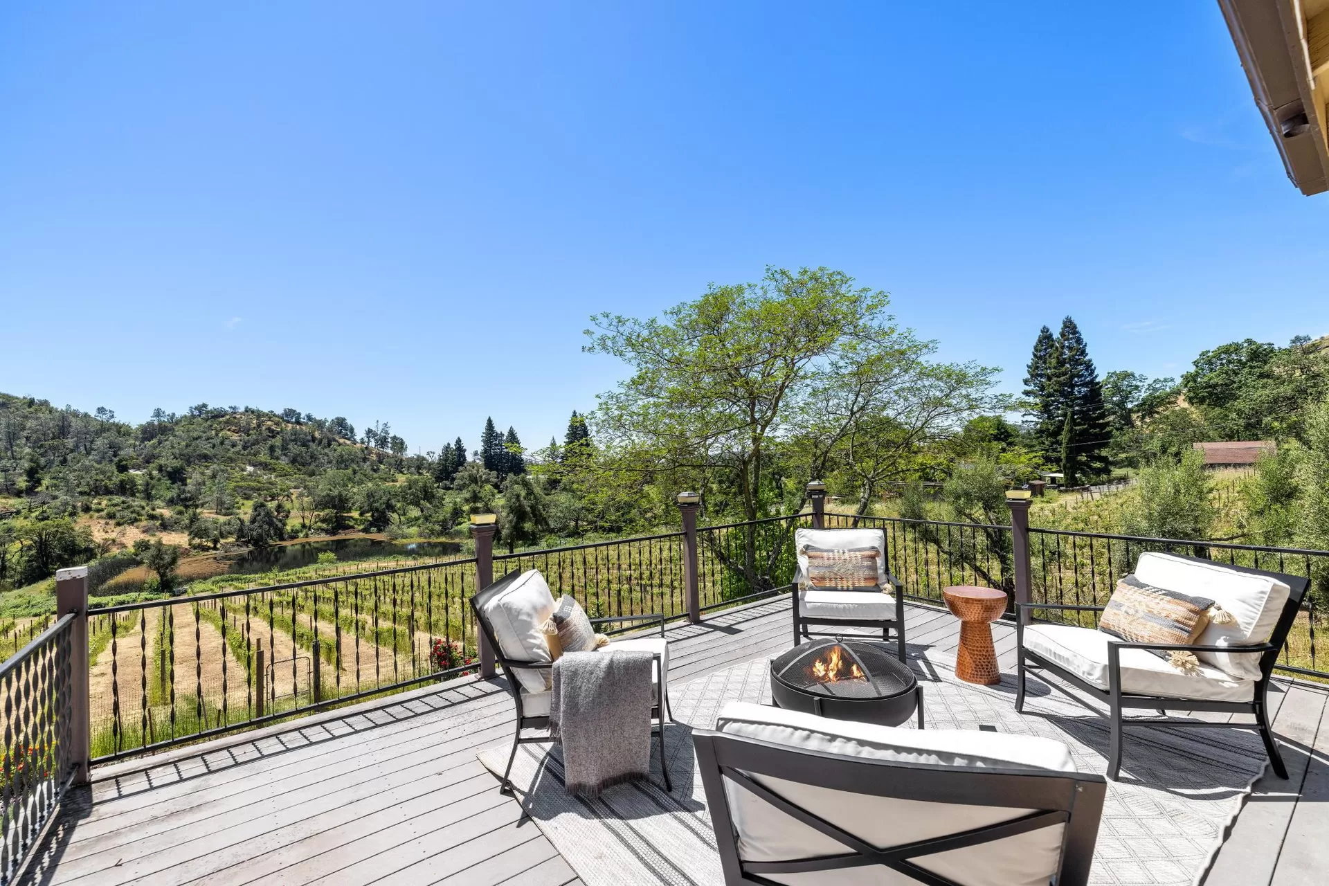 Welcome to your dream home, a remodeled Tuscan-style haven that exudes charm and elegance. Step into a fully landscaped courtyard that invites you to unwind and soak in the beauty of your surroundings. This exquisite residence boasts 4 spacious bedrooms and 2.5 luxurious bathrooms upstairs, all within an open-concept floorplan that perfectly frames breathtaking views of the properties own 0.5 acre gentleman's vineyard, mountains, and two serene spring-fed lakes. Venture downstairs to discover a 1-bedroom, 1-bath junior ADU in the converted basement. This private retreat features travertine floors, a complete kitchen, and a separate entrance, making it ideal for guests or extended family. Green thumbs will delight in the six raised garden beds, perfect for cultivating your favorite plants. The oversized 2-car garage offers ample space for a workshop or additional storage, and there's even room to build a standalone ADU or extra garage/workshop space. This property is equipped with thoughtful amenities, including RV parking, solar panels, a 22KW whole-house generator with an automatic transfer switch, a water storage tank, newer HVAC, and EV charging. Propane fuels the generator, water heaters, and gas range only. It is just a short stunning drive from Silverado Resort.